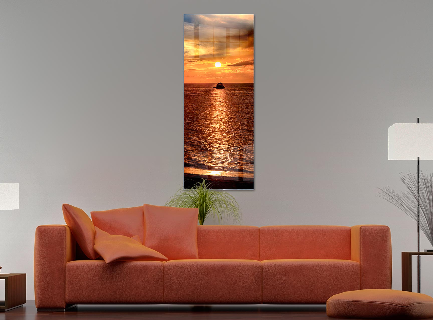 Introduce the natural beauty of the Caribbean into your home or office with this stunning fine art large format panoramic photograph of a beautiful golden sunset over the Caribbean ocean with a Tiki boat in the background. This photograph captures the stunning beauty of the Caribbean's warm waters, the beautiful colors of the sky during sunset, and a Tiki boat adding a touch of tropical atmosphere to the scene. The photograph is taken at the perfect time to showcase the beauty of the sunset, with the warm colors of the sky and the ocean creating a sense of serenity and tranquility.