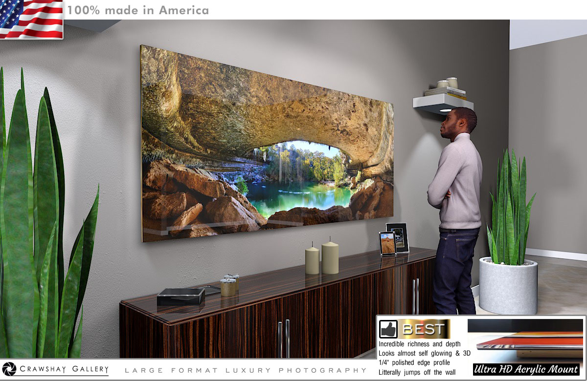 a great and substantial looking side profile. Less scratch resistant, 100+ year color stable. The ultimate contemporary glass like look. Ready to Hang. Learn more about acrylic mounting